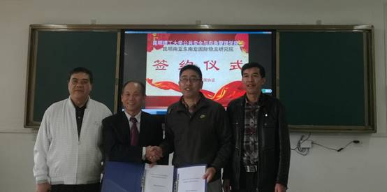 与昆明南亚东南亚国际物流研究院举行战略合作框架协议签约仪式在学院会议室隆重举行,标志着双方建立了稳固的技术交流、人才培训及对外技术服务的合作关系,为双方今后的合作奠定了良好基础。