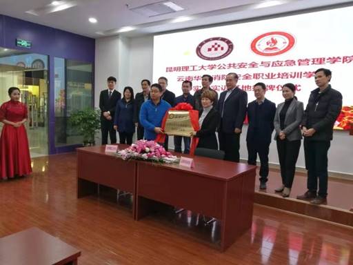 在云南华铄消防安全职培训学校,建立教学实习实训基地举行签约仪式。充分利用该学校建有完整的消防实践设施,实作动手平台及应急模拟系统,丰富我校安全专业学生在消防工程设计与应急管理方面的系统知识。