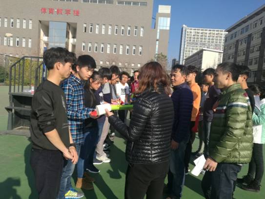 之后,联谊会由教室转到了运动场。运动场上,现场气氛热烈紧张,在千里传珠游戏的比赛中,他们彼此信任,传球、主动跑位、动作连贯,师生的配合度随着比赛的进行愈加的默契;在绑腿跑项目中,师生配合积极,老师们虽然在体力方面不如同学们,但他们经验丰富,在技术上丝毫不逊色于同学们。