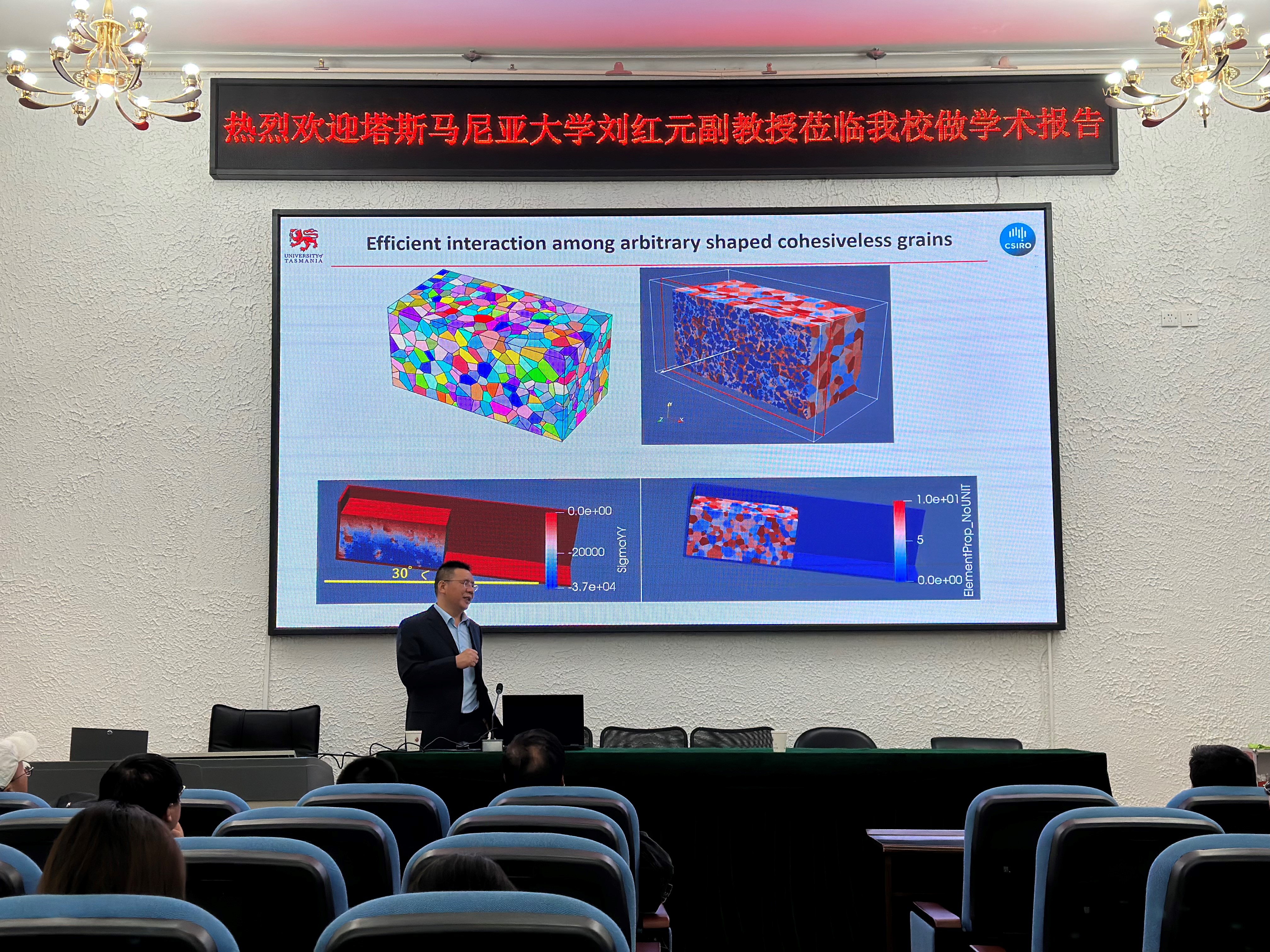 ,做了题为“Development and application of hybridfinite discrete element”的学术报告,董绍伦书记主持了报告会,安全科学与工程和安全工程专业教师、研究生共50余人参加了本次报告会。