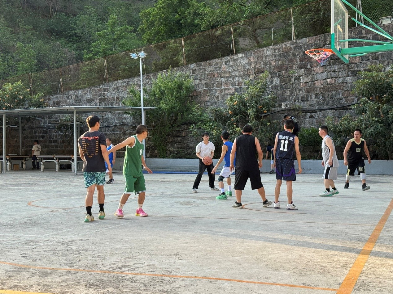 在实习期间,实习团队与金沙公司职工举办了一场精彩的篮球友谊赛。比赛中,双方队员奋力拼搏,抢球、断球、防守、进攻,精彩瞬间不断,赢得了场下观众们的阵阵喝彩。此次篮球友谊赛以党建共建为引领,通过“党建 + 体育”这一创新模式,充分发挥党建的融合、创新、引领、聚力和赋能作用。比赛不仅增进了校企之间的沟通交流,还提升了团队的协作力和向心力,推动党建工作与业务工作深度融合,实现共同发展。