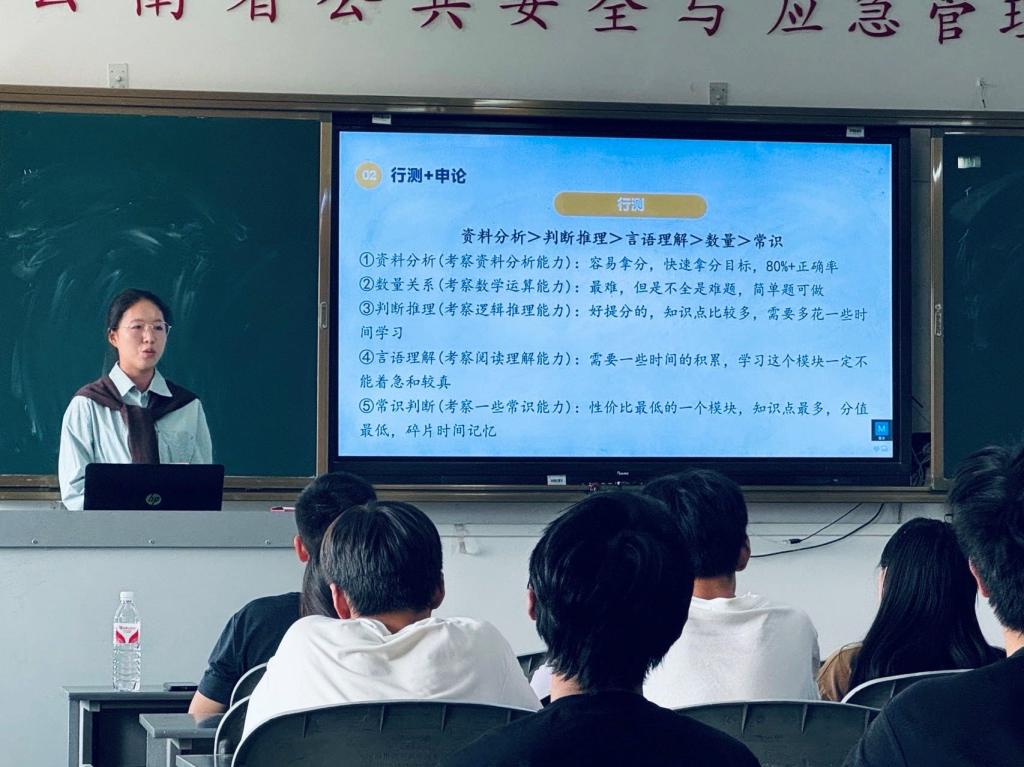 随后,20级五位优秀学生代表,矫文琦、敖齐、赵明豪、粟芊芊和张秀婷分别从学保研、工保研、考研、考公和就业方面进行了详细介绍与分享。他们表示,同学们以积极良好的心态去面对未来,无论选择那一条道路,都要对自己有充分的认知,有条不紊,用心对待,做到“早谋划、早打算、早准备”,相信自己,脚踏实地,如此才能在未来的路途中披荆斩棘,乘风破浪。